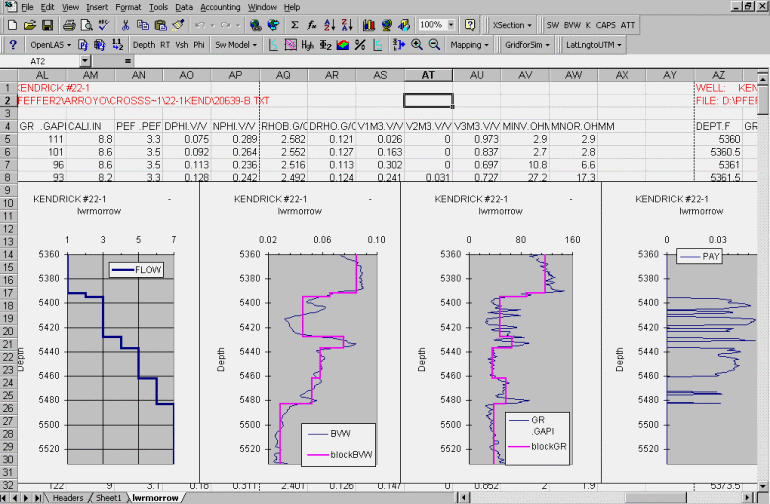Depth-constrained multivariate cluster analysis can be employed to segment the entire spreadsheet into subintervals based on user-specified set of logs. A hierarchical cluster (Ward's method) is used to produce subintervals that are as homogeneous as possible and distinct as possible from each other, in terms of their log characteristics. Option is useful in evaluating flow units and can be used as a blocking function.