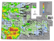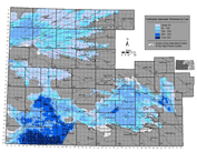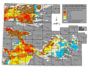 Density Distribution of Average Reported Ground-Water Used from 1996 to 2004 Source: KGS Open File Report 2007-1 Low Resolution: 0.1 MB JPEG High Resolution (PDF): 1.5 MB PDF |