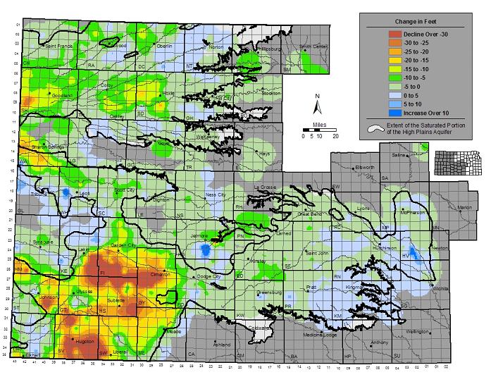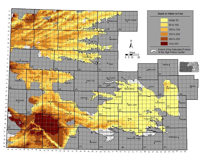 Estimated Usable Lifetime (based on ground-water level trends from 1996 to 2006) Source: KGS Open File Report 2007-1 Low Resolution: 0.1 MB JPEG High Resolution (PDF): 1.5 MB PDF |