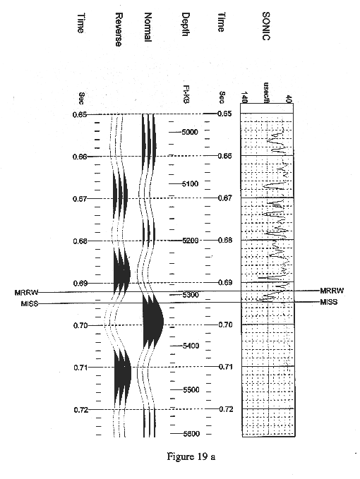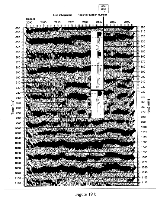 Figure 19. a) Same as Figure 18a but focused near the Morrow clastic section b) Same as Figure 18b but focused on the Morrow clastic section and with every trace displayed.