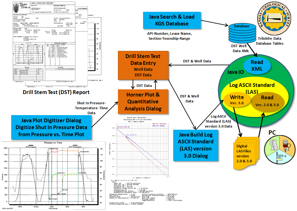 The Kansas Geological Survey (KGS) Database contains over 1000 digital Trilobite DST reports that the user can access and download into the applet.
